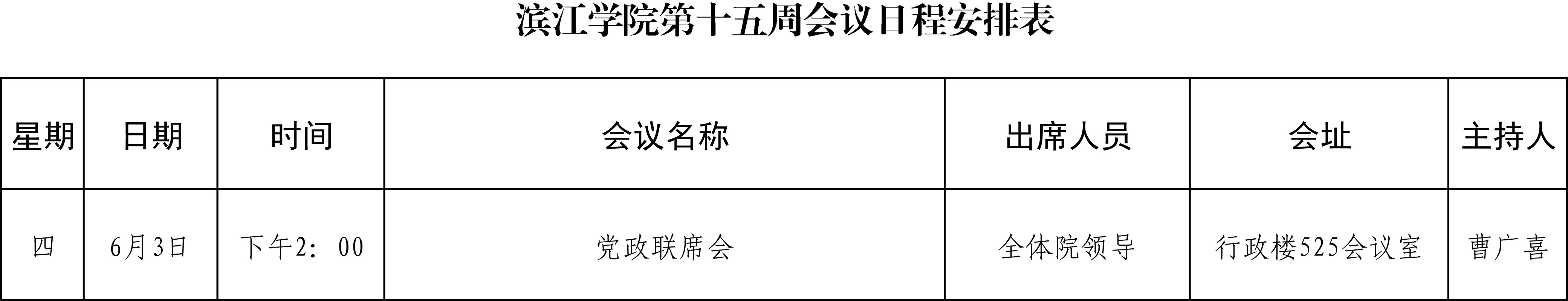 滨江学院第十五周会议日程安排表
