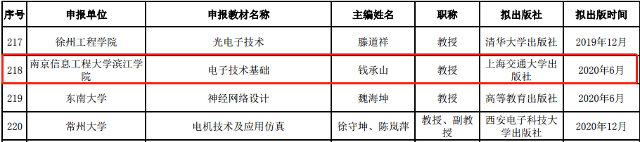 近日,江苏省高等教育学会公布了2019年江苏省高等学校重点教材立项建设遴选结果,共确定立项建设重点教材502部,其中修订教材164部,新编教材338部。我院曹广喜教授主编的《院概率论与数理统计》、钱承山教授主编的《电子技术基础》获批立项。全省25所独立学院中有9所院校教材获批立项,我院获批数量位列第一。