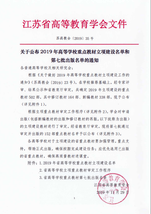 我院2部教材获批2019年江苏省重点教材立项建设