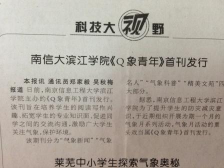 日前,《中国气象报》报道了我院大气系《Q象青年》首刊发行的消息。