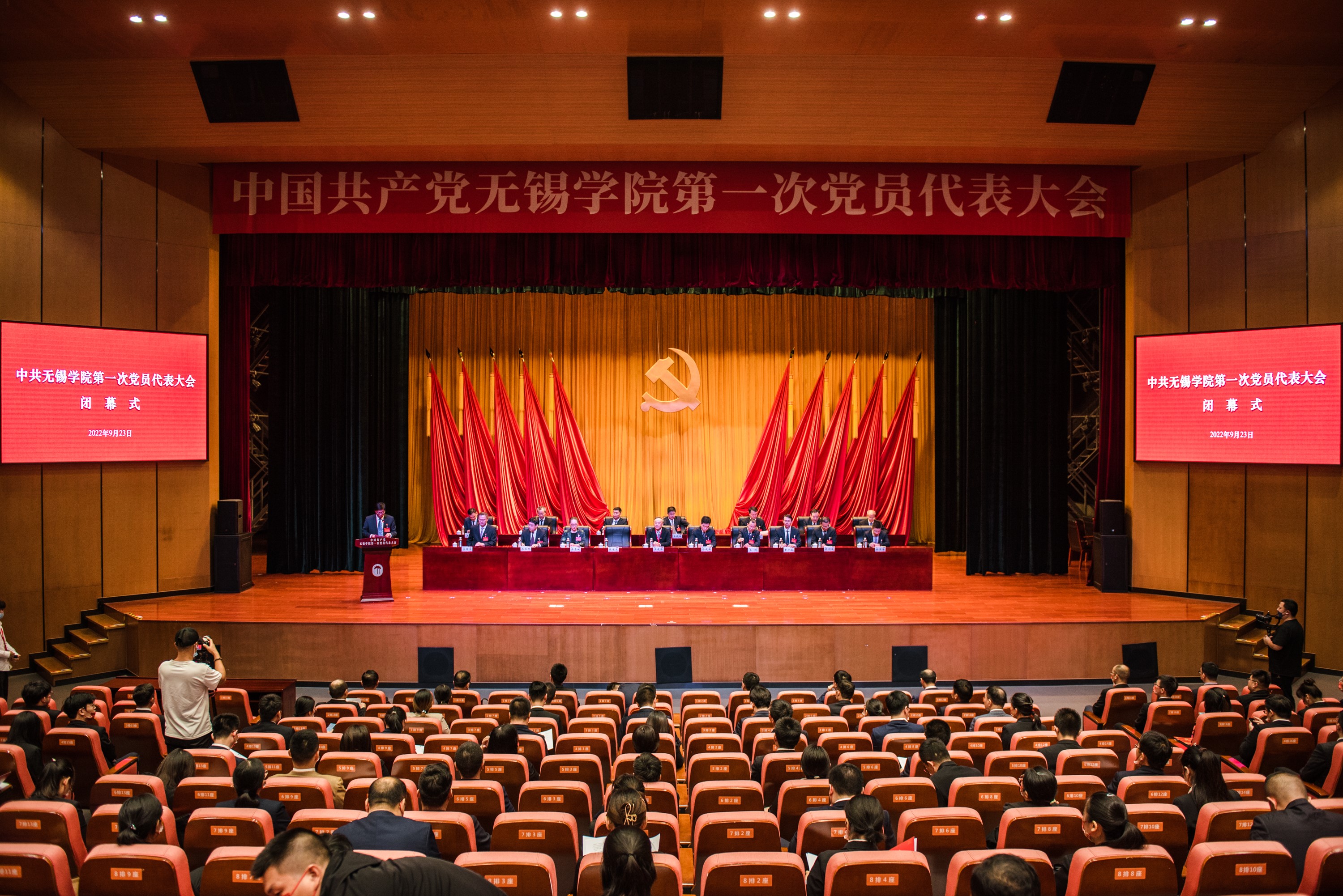 在庄严的《国际歌》歌声中,中国共产党无锡学院第一次党员代表大会圆满完成各项议程,胜利闭幕。