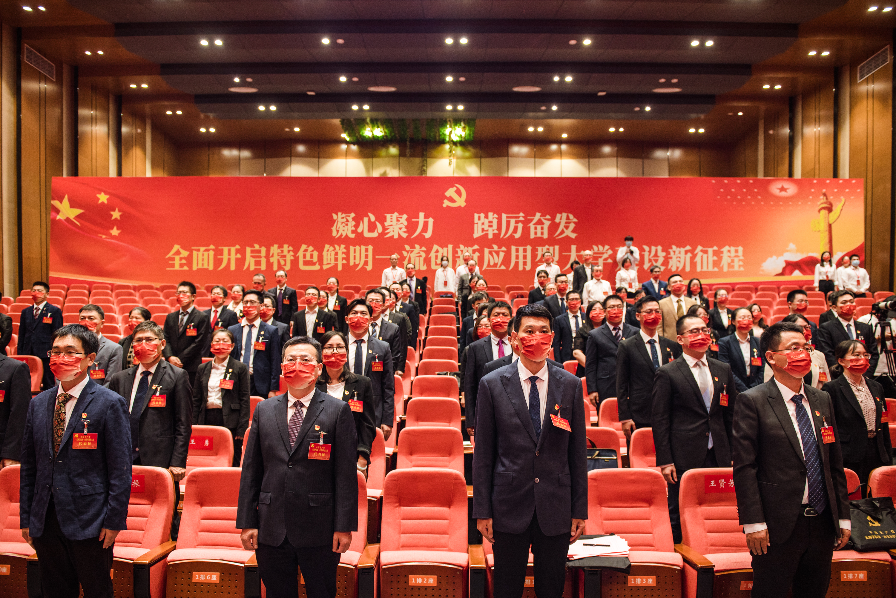 杨建新号召,全校各级党组织和全体党员要在第一届党委的坚强领导下,更加紧密地团结在以习近平同志为核心的党中央周围,高举中国特色社会主义伟大旗帜,深入学习贯彻习近平新时代中国特色社会主义思想,全面落实立德树人根本任务,切实执行大会的各项决议和要求,带领全校师生员工团结干事,艰苦奋斗,开拓进取,追赶超越,努力开创建设特色鲜明一流创新应用型大学的新局面,以优异成绩迎接党的二十大胜利召开!