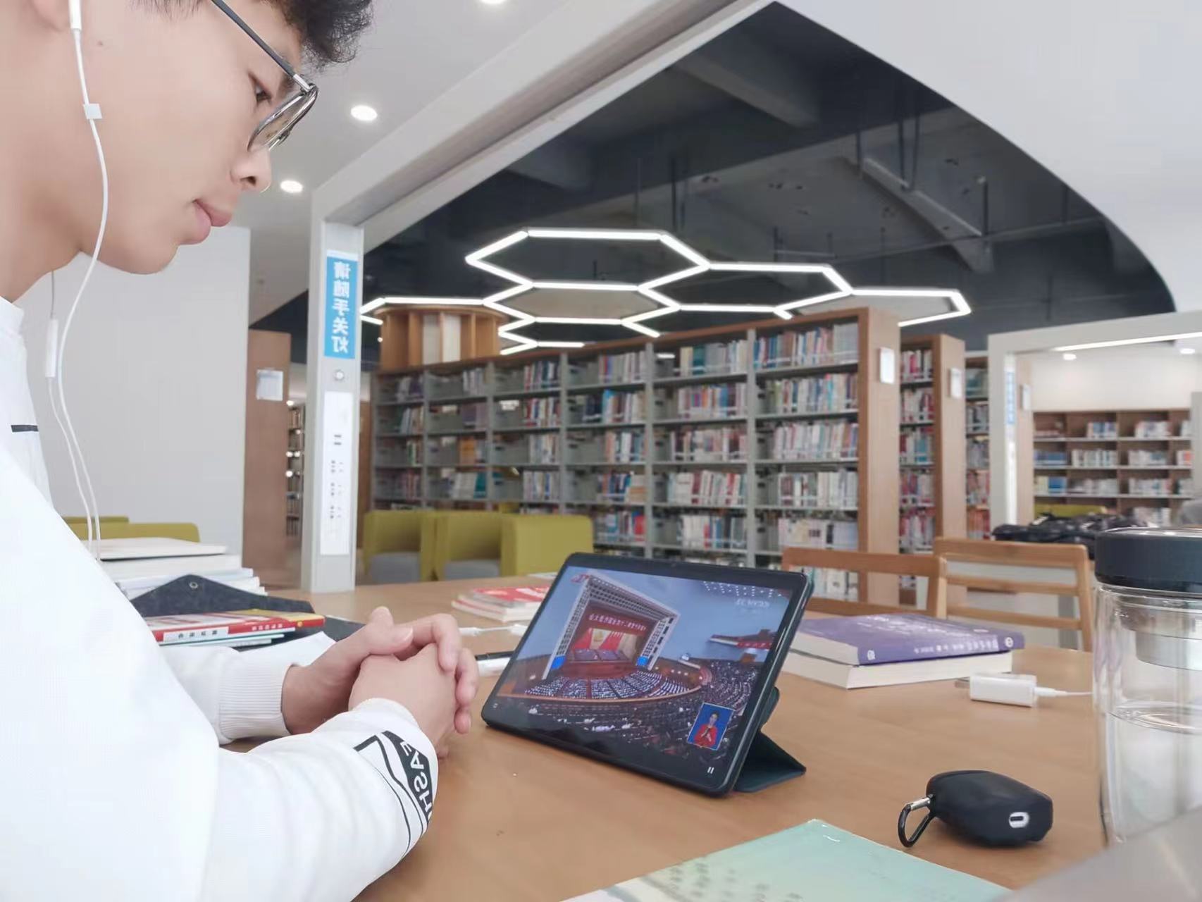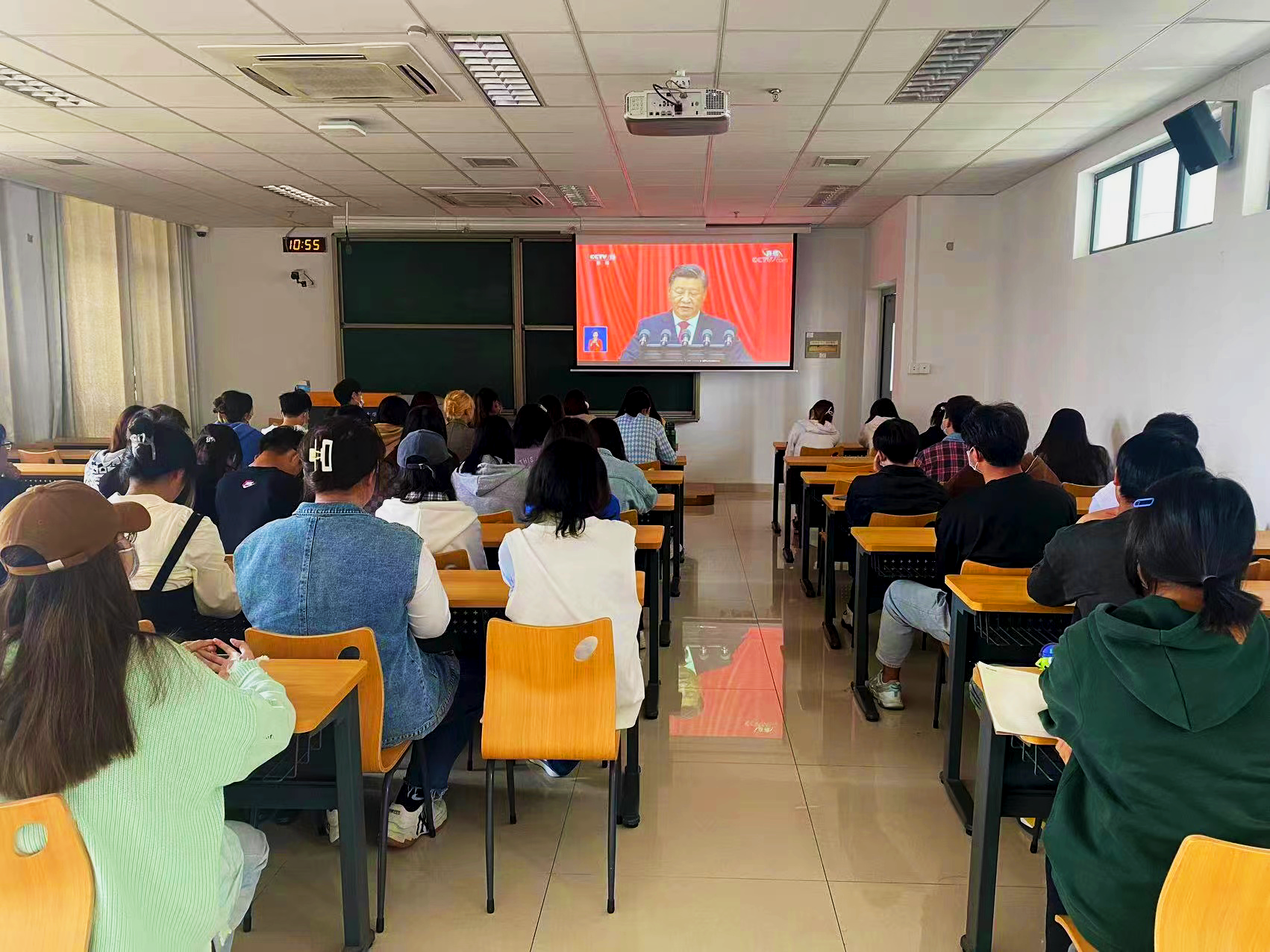 师生自行观看党的二十大开幕盛况