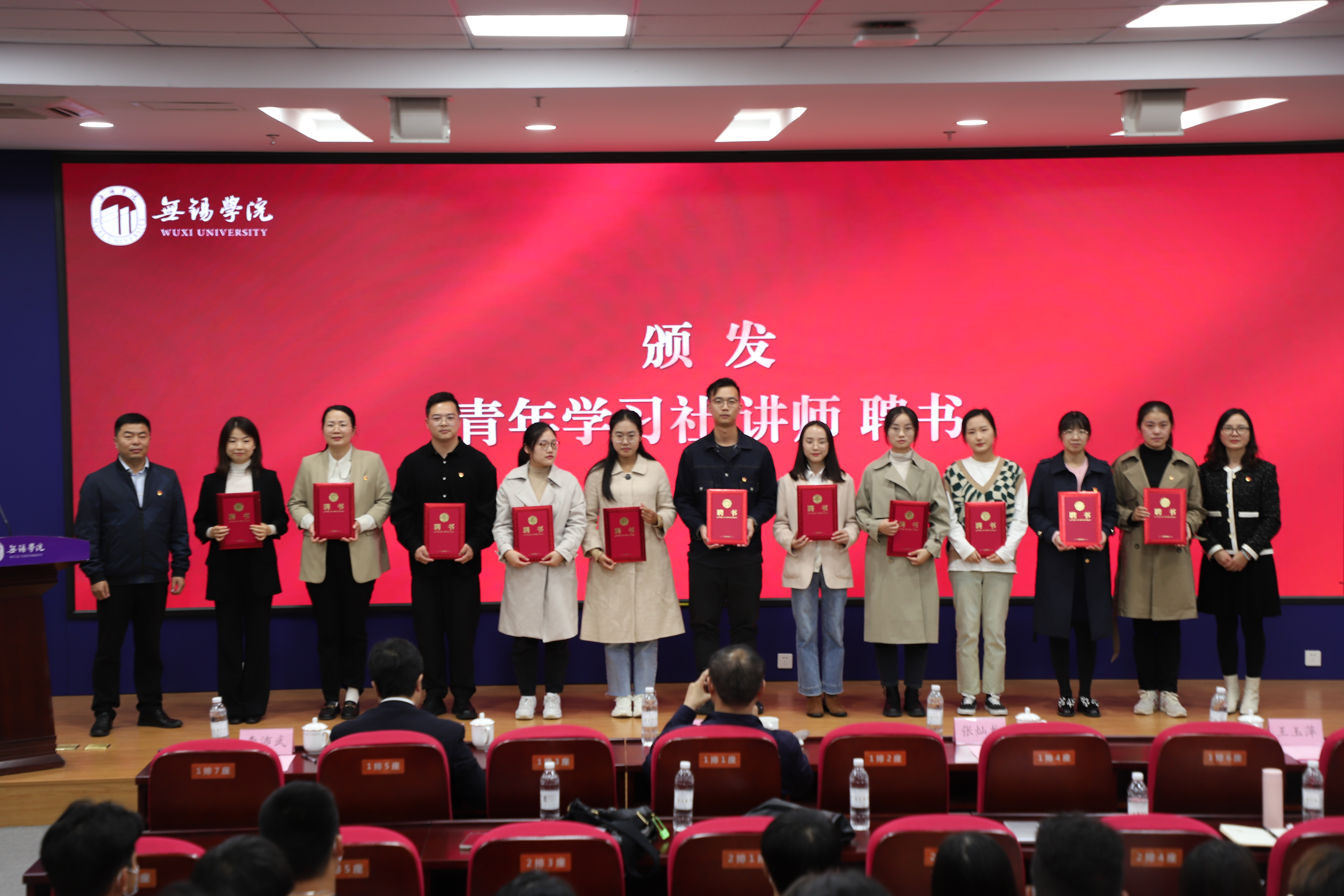 成立仪式上,党委宣传部负责人季王飞宣读了《关于成立无锡学院青年学习社的通知》。党委学生工作部负责人张灿龙、马克思主义学院负责人王玉萍为青年学习社讲师颁发聘书。