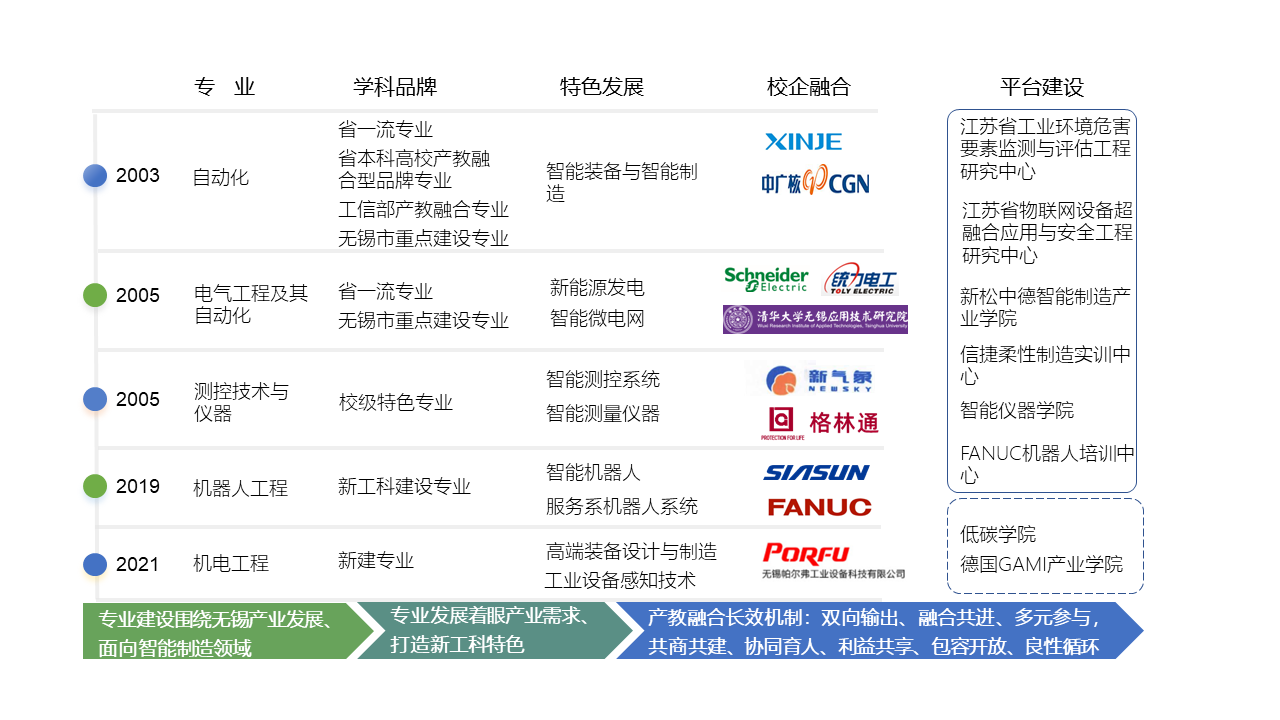 智能制造学科带头人张永宏表示,将坚持党建引领,多方施策探索一条符合无锡市产业特色的自动化类应用型本科学生人才培养之路。从改革培养体系、创新教学方法、搭建实践载体、挖掘企业潜能、提升教师能力等方面建设,支撑提升学生思想文化修养、基础理论水平、工程实践能力,能够达到国家对创新应用型人才培养目标。将努力建立校企协同、地方联合的产教融合高端平台。持续联合无锡新松机器人、无锡信捷电气等本地龙头企业,高质量建成智能制造产业学院,联合清华大学无锡应用技术研究院、国家电网等单位共建新能源发电与智能微电网实验室,联合无锡市市场监督管理局共建低碳学院。靶向引进领军人才和高端双师型专家,打造“基础+双师+企业”师资队伍,提升指导教师工程实践的带教水平和能力。以培养学生专业学习兴趣为抓手,构建以项目导向型的全过程工程实践项目链,为学生提供星期日实习生项目,助力学生更好发展。