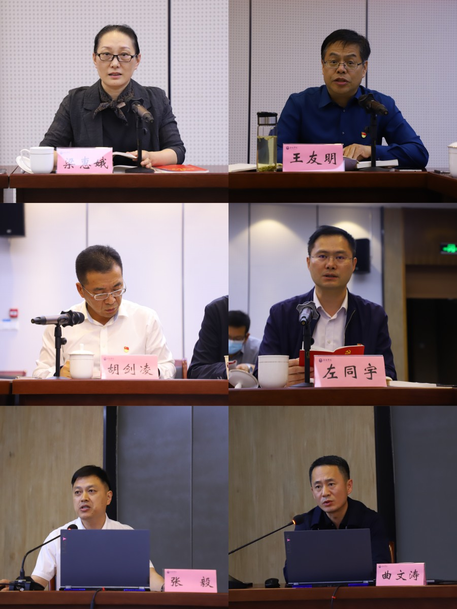 副校长梁惠娥领读《习近平新时代中国特色社会主义思想专题摘编》中“教育是国之大计、党之大计”“完善科技创新体系”相关内容;校纪委书记王友明领读《论党的自我革命》中“时刻保持解决大党独有难题的清醒和坚定,把党的伟大自我革命进行到底”相关内容;副校长胡剑凌领读《习近平新时代中国特色社会主义思想专题摘编》中“实施创新驱动发展战略,实现高水平科技自立自强”“实施人才强国战略”相关内容;副校长左同宇领读《中国共产党章程》总纲中“党的建设必须坚持六项基本要求”相关内容。