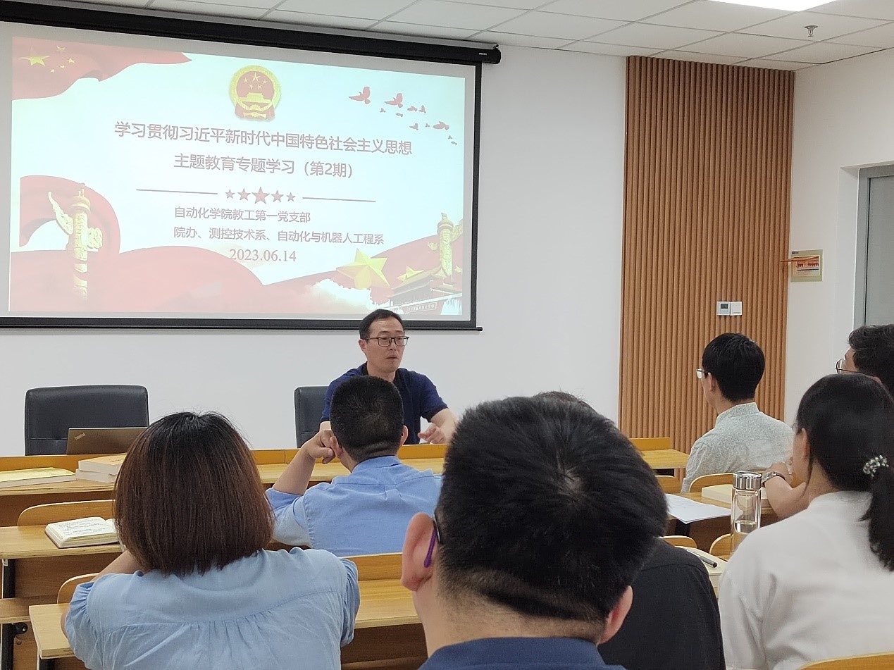 6月14日下午,自动化学院教工第一党支部、自动化与机器人工程系、测控技术与仪器系和学院办公室全体教师在思齐楼510召开了学习贯彻习近平新时代中国特色社会主义思想主题教育专题学习会(第二期)暨安全生产专题教育会,院长李鹏、副院长孙宁列席参加了会议,教工第一党支部书记宋莹主持会议。
